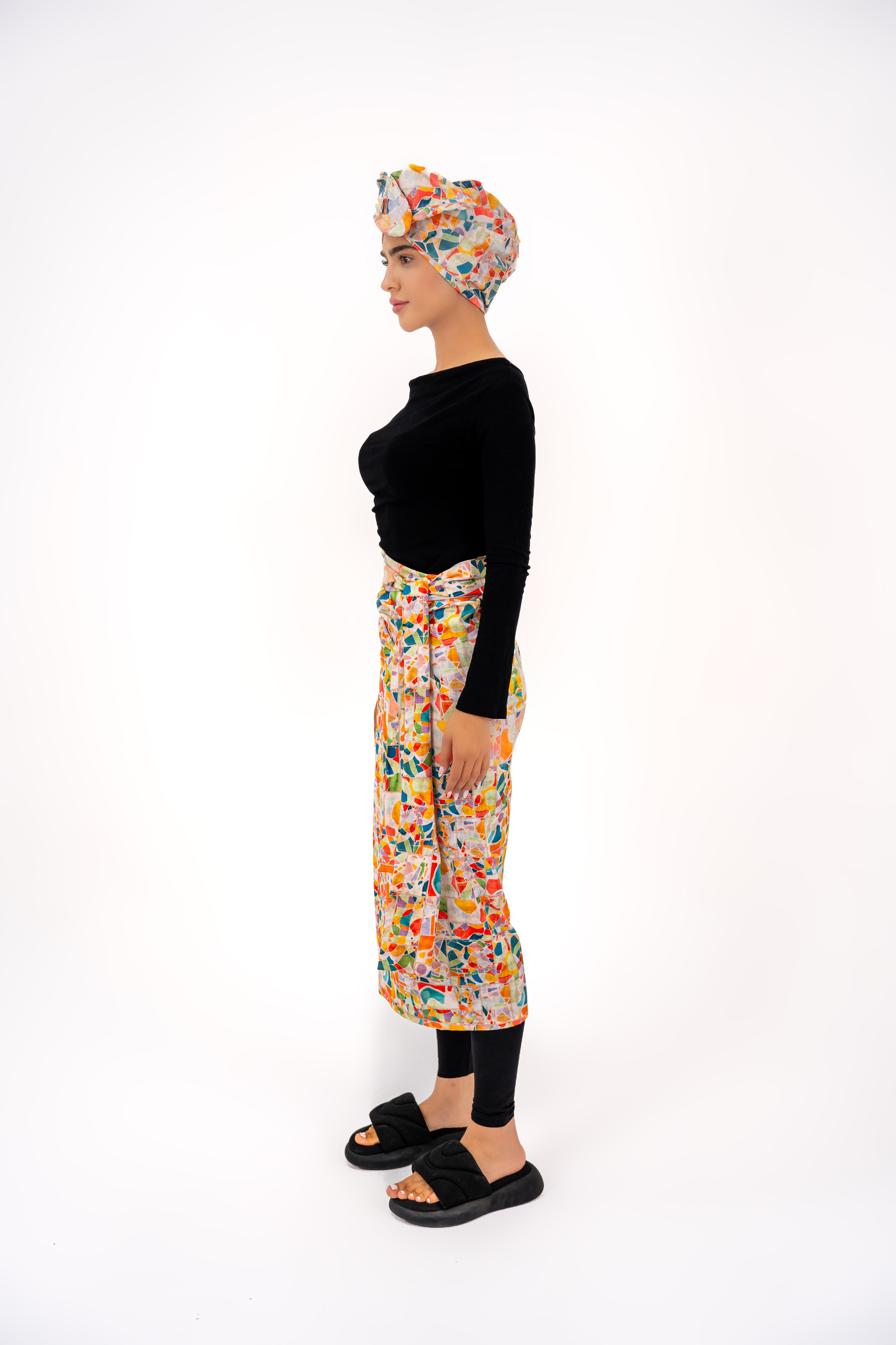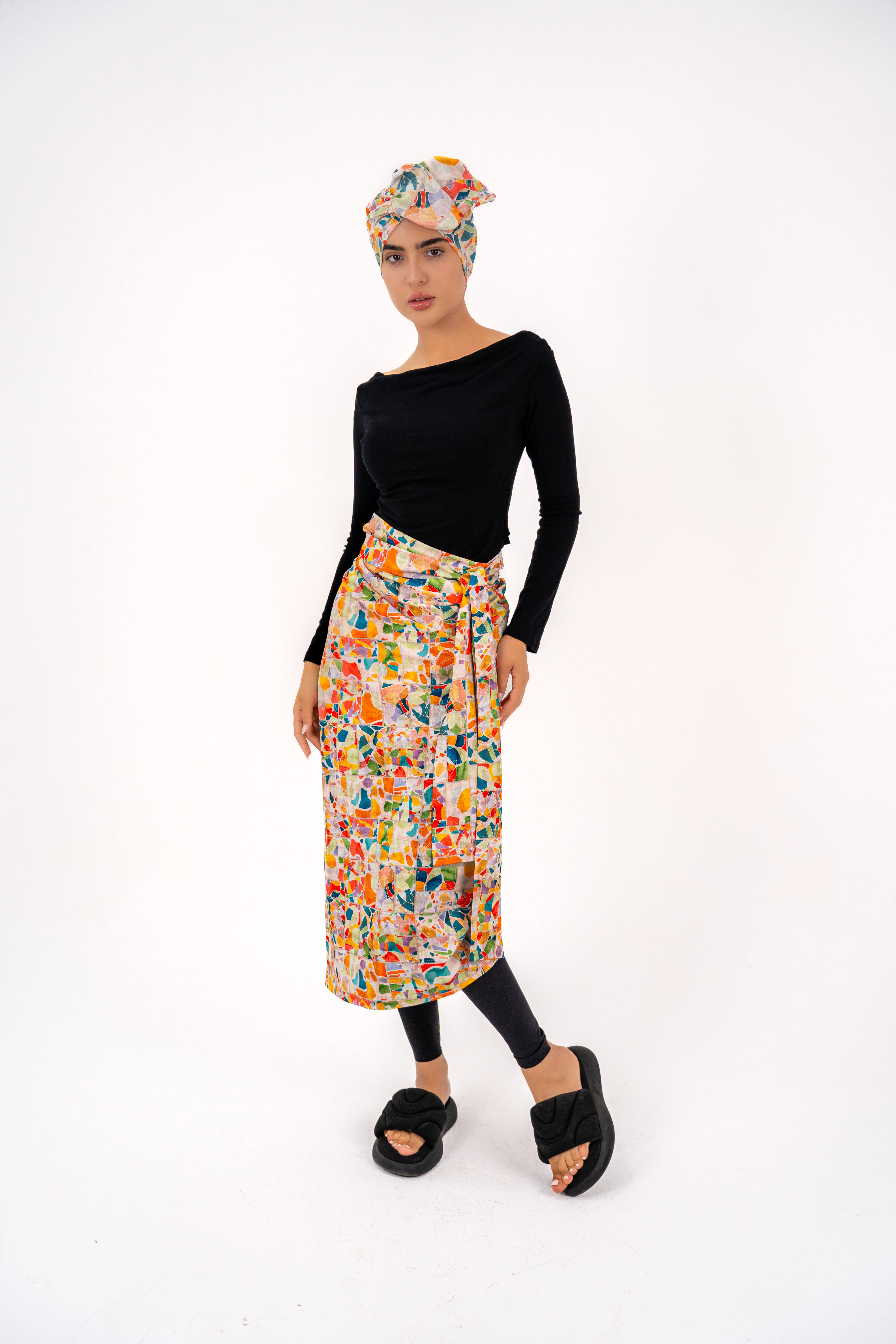 A new concept, your go-to cover-up, and wrapped dress, designed in “Mosaic” details full of colors to feel the freedom of multiple choices of style between dress, coverup, and wrapped skirt all in one piece.