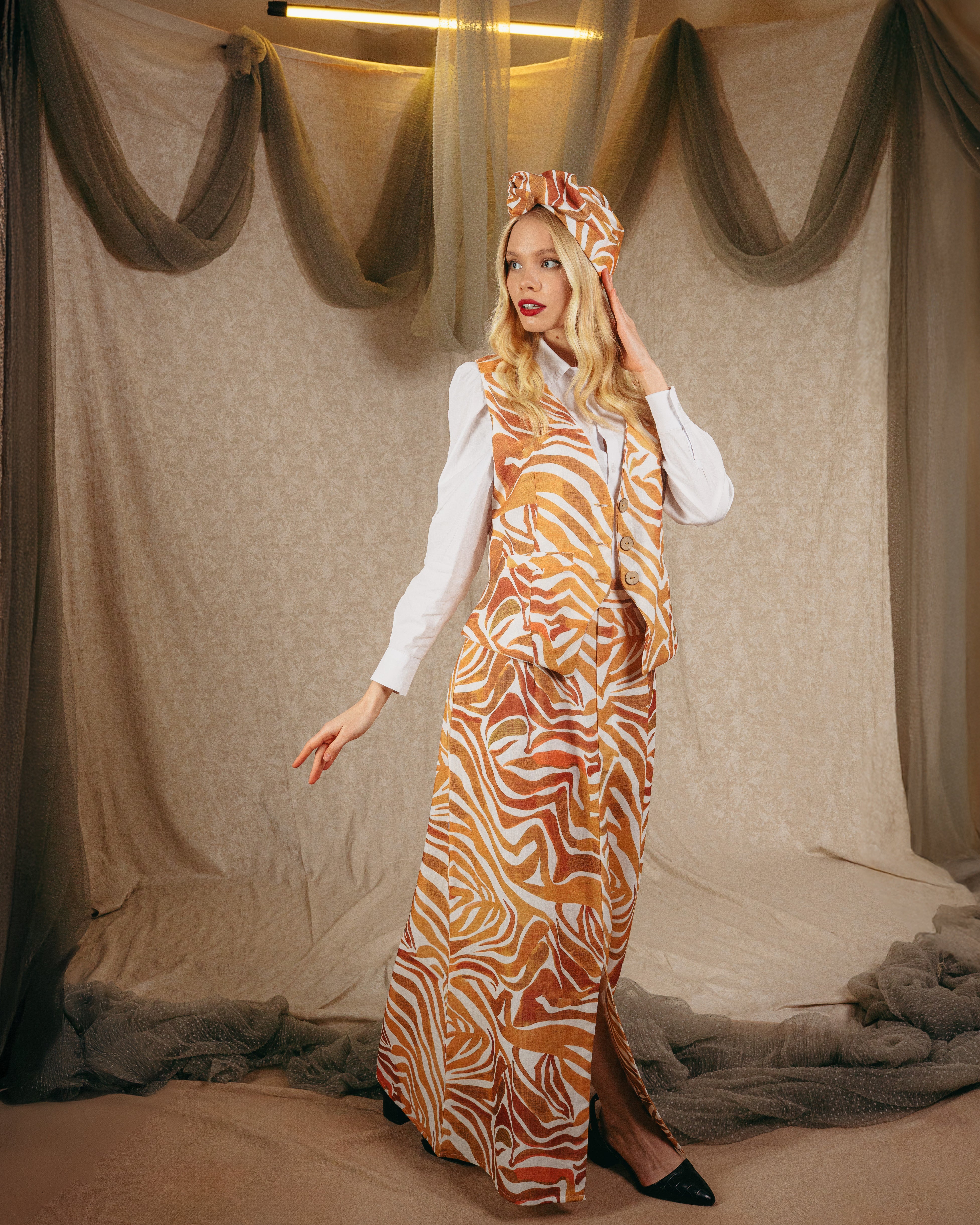 Embrace your wild side with the “Starlight Vest.” Inspired by the adventurous spirit of safari style, this animal print vest adds a bold and edgy touch to any outfit. Perfect for layering, it brings a fierce yet sophisticated vibe to your wardrobe.
